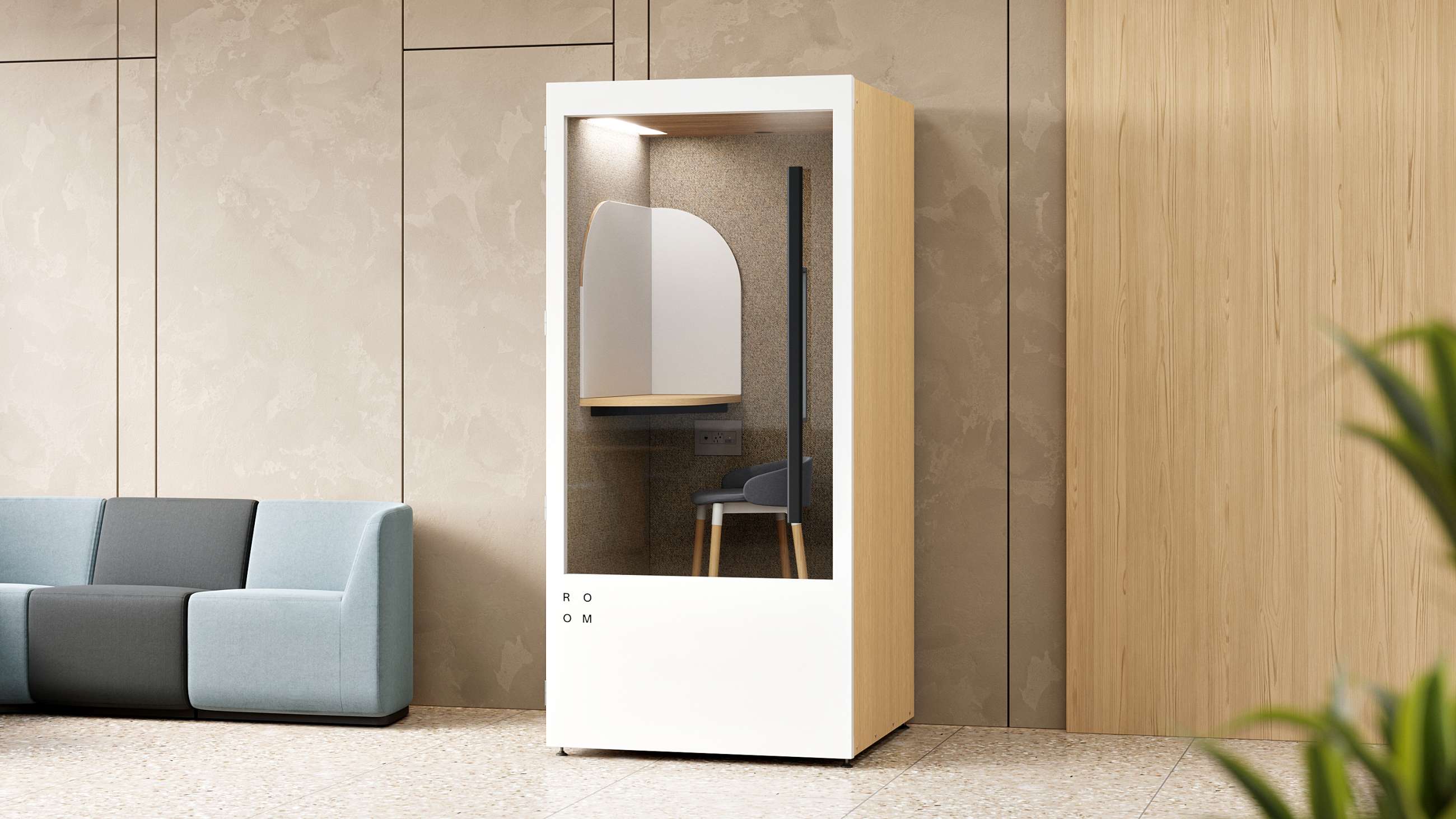 The ROOM x Carolina Phone Booth brings the best of both brands together: healthcare-grade finishes designed to endure the demands of healing environments paired with sustainable soundproofing that supports patient privacy and caregiver well-being.